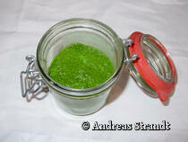 Zu Fleischgerichten oder für den Wurstbelag ist es eine willkommene Würzsoße. Bärlauchpesto hat anfangs einen fruchtig frischen Geschmack, erst dann kommt der typische Bärlauchgeschmack zur Geltung mit der eigenen Schärfe und der des Pfeffers.