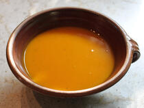 Richtig deftige Kürbissuppe mit Weißwein und Knoblauch. Hochgelobt von Leuten, die eigentlich keinen Kürbis mögen.