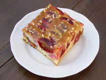Immer locker und saftig in verschiedenen Variationen, als: Pflaumenkuchen, Apfelkuchen, Rhabarberkuchen, Pfirsichkuchen, Sauerkirschkuchen.
