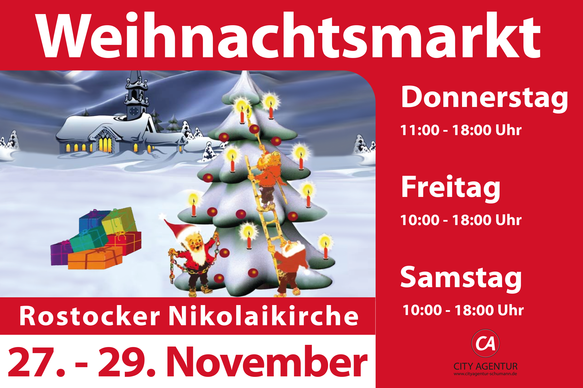 Mit einem leuchtenden Weihnachtsstern im Altarbereich, ca. 40 weihnachtlich gestalteten Kunsthandwerker-Ständen und einem verführerischen Duft aus Weihnachtsstollen, Punsch und einem leckeren Imbissangebot, lädt die Rostocker Nikolaikirche auch in diesem Jahr zum großen Kunsthandwerker-Weihnachtsmarkt ein.